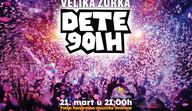 DETE 90-ih Još jednom se vraćamo u vreme kaseta, diskmena i hitova koje svi dobro znamo. 21. mart u 21h Foaje Kongresno-muzičke dvorane, Centar Millennium Cena ulaznice: 600 din. BARSKI STO: 600 din. po osobi (gratis jedno piće po izboru). Prodaja ulaznica
