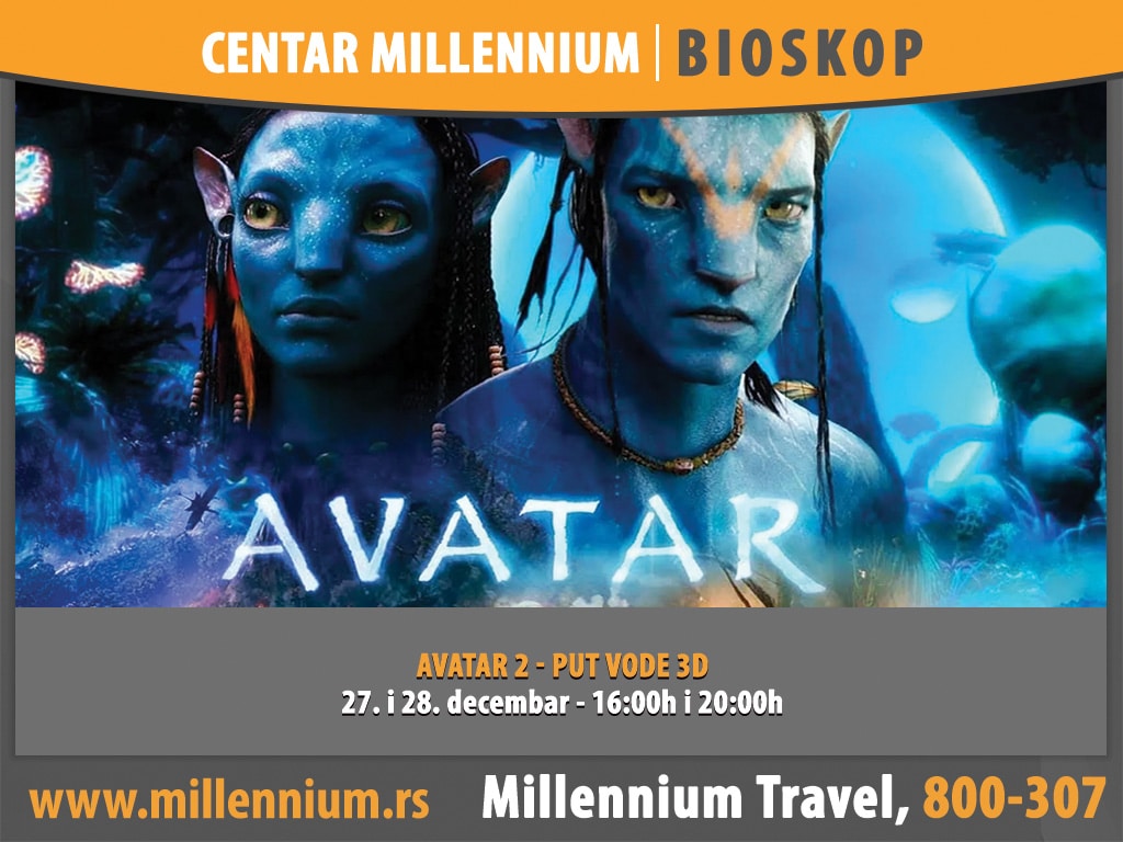 U utorak 27. decembra i u sredu 28. decembra od 16h i od 20h prikazivaće 3D film „Avatar 2 – Put vode.